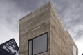 Ebeling House, designed by German firm ArchiFactory.de, is situated in a southern suburb of Dortmund. The wooden monolithic block contrasts with the inclined roofs of sixty years old chalets. Kept in its sculptured shell, the house is visible only through some windows, aligned to the planking made by hardwood tables. Inside there is a basic and essential architecture… [Arkinetia]